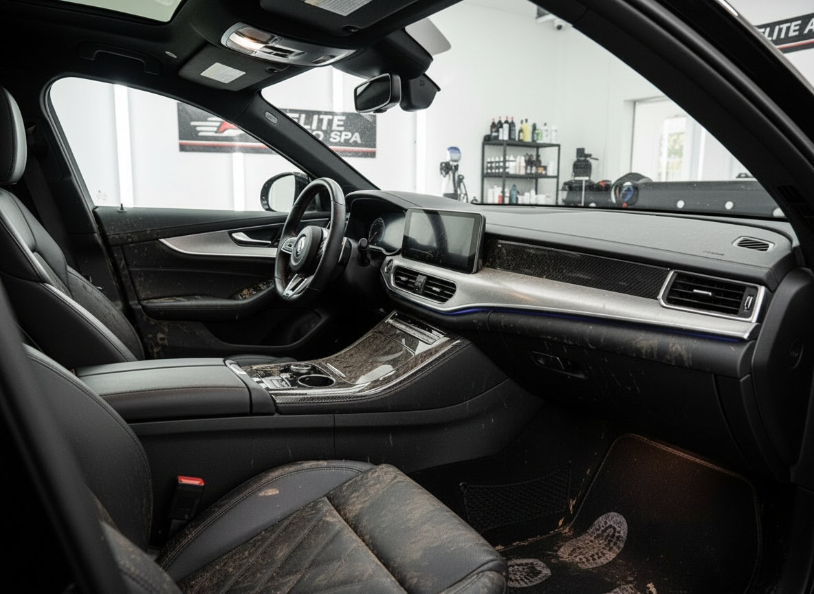 Czyszczenie wnętrza to kompleksowe odświeżenie kabiny, które obejmuje usunięcie zabrudzeń, kurzu, plam, osadów oraz nieprzyjemnych zapachów. W przeciwieństwie do szybkiego „odkurzenia”, jest to dokładna, wieloetapowa praca, obejmująca tapicerkę, plastiki, podsufitkę, szyby i trudno dostępne zakamarki.